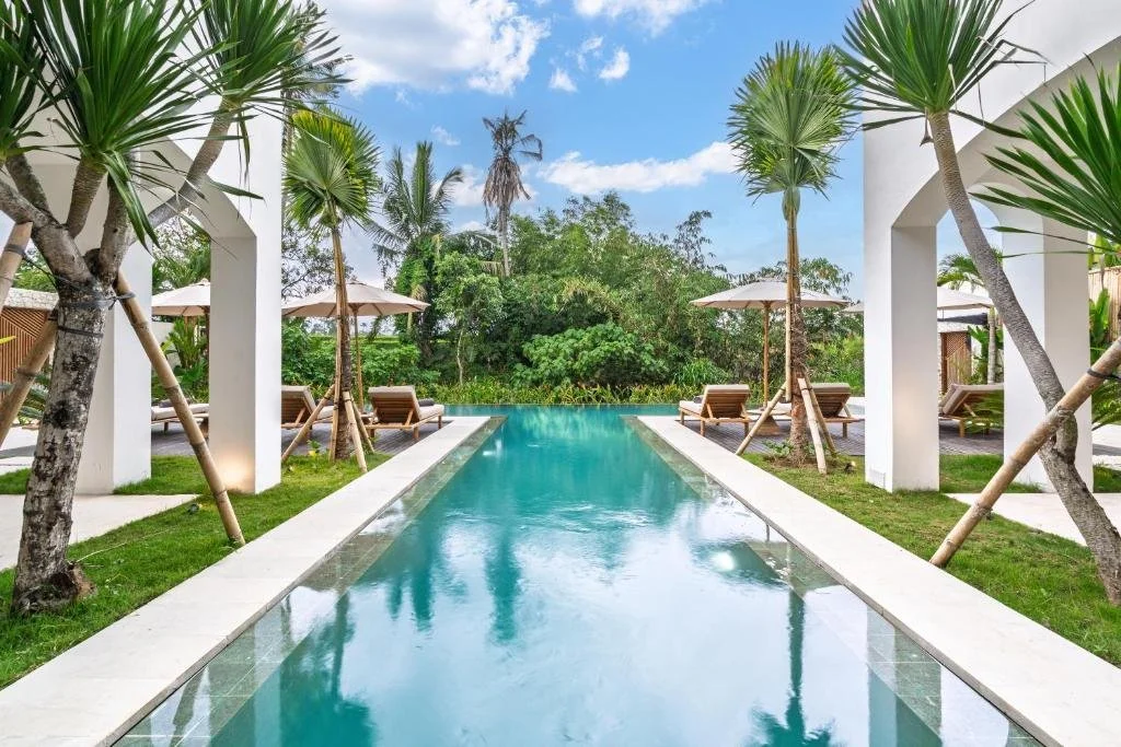 Luxury rooms, infinity pool, and the sound of ricefields at dawn.